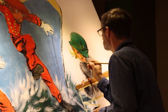 Laurent Verron réalisant une fresque en direct au Palais du Grand Large, à l’occasion de la sortie de l’album “Il s’appelait Ptirou”