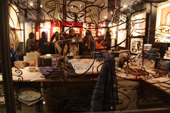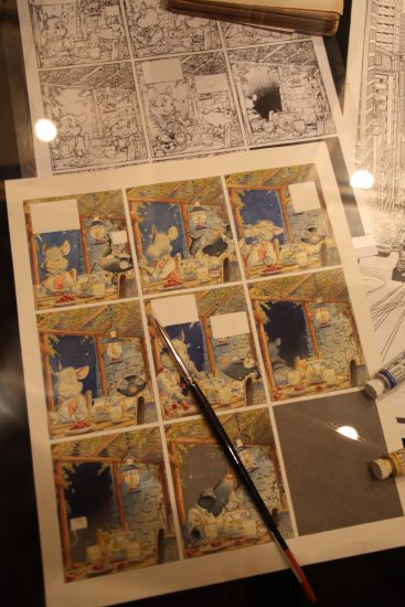 Et tandis que l’affiche du 37ème festival Quai des Bulles étendait la présence bienveillante de Michel Plessix sur Saint-Malo, une exposition organisée en sa mémoire nous invitait dans l’intimité de son atelier.