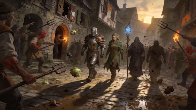 À l’inverse, si votre mage a lamentablement raté son sort de boule de feu et a roussi les sourcils du boucher, ne vous attendez pas à de la clémence. La table de rumeurs devrait mentionner qu’un sorcier démoniaque tente d’incendier les réserves de viande du village par pur sadisme. C’est là que l’humour intervient : voir la tête de vos joueurs quand ils réalisent que leur « moment de gloire » a été totalement réinterprété par la sagesse populaire est un plaisir dont je ne me lasse jamais. Avouez-le, vous aussi, vous adorez ce moment où le barde s’indigne parce que la chanson locale raconte qu’il a été sauvé par un enfant de huit ans armé d’une fourchette.